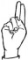 На ћирилици написано АНДЈЕЛИНА ЈЕЛЕНКОВИЋ састоји се из 19 слова [?]. Исписано ћириличном једноручном азбуком за глувонеме: